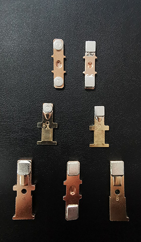 公司立足于環(huán)保型電接觸材料的研究,自主開發(fā)了擁有自主知識產(chǎn)權(quán)的“銀-錫銦復(fù)合氧化物電工觸點(diǎn)材料及其制備工藝”,采用化學(xué)包覆法,成功在"銀氧化錫"材料中添加特殊材料,增強(qiáng)了材料的特殊性能,拓寬了材料的應(yīng)用領(lǐng)域。以 “銀氧化錫銦觸點(diǎn)材料”為核心技術(shù),不斷開發(fā)出了“電接觸線材、復(fù)合帶材、電接觸元件和組件”等一系列多類型產(chǎn)品;核心技術(shù)均獲得發(fā)明專利授權(quán)。
